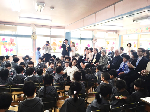 園服測定に来た小さい子にも興味津々なお兄さんお姉さんです。